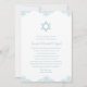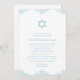 This elegant, timeless Bat Mitzvah invitation features a blue Star of David and a decorative blue lace design along the top and bottom edges. The invite could also be used for a Bar Mitzvah celebration.