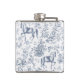 Elegant Blue Beige Equestrian Floral Toile Name Hip Flask