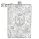 Elegant Blue Beige Equestrian Floral Toile Name Hip Flask