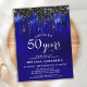 Elegant Blue Black Glitter Drips 50 Birthday Party Invitation Postcard