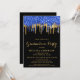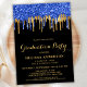 Elegant Blue Black Gold Glitter Drips Graduation Invitation