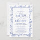 Elegant Blue Botanical Holy Baptism & 1st Birthday Invitation