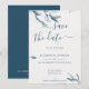 Elegant blue botanical watercolor simple wedding save the date