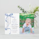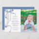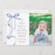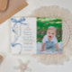 Elegant Blue Bow & Rosary Photo Baptism Invitation