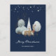 Cute blue Merry Christmas postcard featuring a watercolor winter scene with a buck and a doe in a snowy forest and shining stars above them. Easily personalize this blue holiday postcard with your family name, return address and additional text as desired.