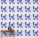 The artwork is of the word "Love" along with a matching heart, presented in an elegant, chequered blue design and simple pattern.