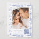 Elegant Blue Chinoiserie Floral QR Code Wedding Save The Date