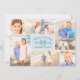 Stylish photo collage card for the holidays features six (6) of your favourite family photos from the year with custom "Merry Christmas / Warmest Wishes" and monogram text. The back of the card includes a pattern of diagonal white stripes. Note, the pale blue / grey background + teal and green text colours can be modified to coordinate with your photo.