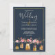 This romantic and chic floral photo wedding design features an elegant combination of watercolor rustic romantic lanterns and string lights and elegant coral, rose gold, blush, peach, and pink peonies and other flowers on a navy blue background with gold frames and trendy hand lettered script. They are perfect for the floral wedding, rose gold wedding, pink wedding, navy blue wedding, navy wedding, coral wedding, blush wedding, blush pink wedding, strings lights wedding, rustic romantic barn wedding, farm wedding, elegant wedding, rustic lanterns wedding, rustic wedding, romantic wedding, trendy wedding, or any other modern wedding venue. Easy to personalize with your own information, and the background colour is also customizable. Design by T.K. Goforth.