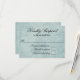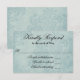 An elegant wedding RSVP design featuring a blue-on-blue damask pattern. Insert your required response date in place of the sample date shown in the design template.