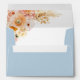 Elegant blue envelope with beautiful peach floral detail on the inside. Wedding envelope with design coordinating our "Peach Delight collection" invites. Delight your guest as they open the envelope to find exquisite corner floral design inside, in a beautiful blend of orange, peach, desert rose, blush, cream and champagne hues. Design with option to add or erase name(s) and address on top back flap. NOTES: 1) the default size A7 fits our 5" x 7" invitation cards, please make sure to select the right size for you before ordering (envelope measurements explanation on product page left bottom area), 2) Option to choose paper type from basic paper or linen. Part of our "Peach Floral Delight with Blue" collection with a variety of coordinating products available. Visit the entire extent of this collection at: https://www.zazzle.com/collections/peach_floral_delight_with_blue-119436951689312574