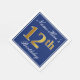 This simple and elegant paper napkin design features a message like "Name-Here’s 12th Birthday" (with the "12th" having a faux gold-like colouring) within a blue-coloured square area featuring a simple border outline. The name is in white-coloured script-like text, and can be personalized. Napkins like these could perhaps be used at a birthday party for somebody who is celebrating their twelfth birthday. [~Z0000141]