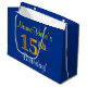 Elegant, Blue, Faux Gold 15th Birthday + Name Large Gift Bag