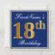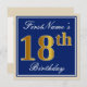 Elegant, Blue, Faux Gold 18th Birthday + Name Invitation