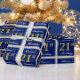 Elegant, Blue, Faux Gold 21st Birthday + Name Wrapping Paper