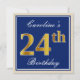 Elegant, Blue, Faux Gold 24th Birthday + Name Invitation