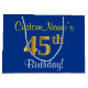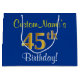 Elegant, Blue, Faux Gold 45th Birthday + Name Large Gift Bag
