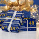 This simple and elegant wrapping paper design features a personalized message like "Alexander’s 48th Birthday" (with the "48th" having a faux/imitation gold-like colouring look) within a blue-coloured square area featuring a simple border outline. The name is in an elegant white-coloured script-like text, and can be customized. Wrapping paper like this could perhaps be used when wrapping birthday gifts for somebody who is celebrating their forty eighth birthday. [~Z0000221]