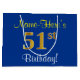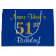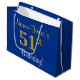 Elegant, Blue, Faux Gold 51st Birthday + Name Large Gift Bag