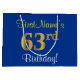 Elegant, Blue, Faux Gold 63rd Birthday + Name Large Gift Bag