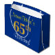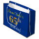 Elegant, Blue, Faux Gold 65th Birthday + Name Large Gift Bag