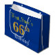 Elegant, Blue, Faux Gold 66th Birthday + Name Large Gift Bag
