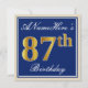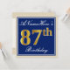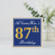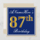 Elegant, Blue, Faux Gold 87th Birthday + Name Invitation