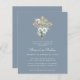 Celebrate this special occasion with our elegant and ornate Blue and Gold Cross First Holy Communion paper Invitations! Featuring a stunning blue and gold cross design with delicate flowers on a dusty blue background, these affordable paper invitations are the perfect way to invite your loved ones to this significant event. With elegant lettering, this invitation is sure to impress your guests and set the tone for a memorable celebration. What's more, our Blue and Gold Cross First Holy Communion Invitations are easy to personalize, allowing you to add your own special touch and make them uniquely yours.