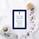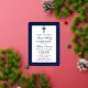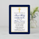 Elegant Navy Blue and Gold First Holy Communion Invitation with Cross. Gold Foil Frame. Gold Foil Cross. Rounded Edges. Photo Back.