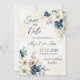 Elegant Blue Flora Winter Save the Date Card