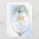 Elegant Blue Floral 80th Birthday Party Invitation