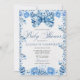 Elegant Blue Floral Bow Chic Toile Baby Shower Invitation