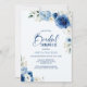 Invite your friends and family to attend your bridal shower with this elegant blue floral bridal shower invitation. You can effortlessly add all the necessary details to the customizable text. Choose from various paper types and corner styles to make your invitations unique. Additionally, you have the option to download the invitation if you prefer a digital format.