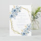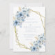 Make a stunning first impression with this Elegant Blue Floral Geometric Frame Bloom Wedding Invitation. Featuring a sophisticated blend of dusty blue and navy florals, this design is beautifully framed within a modern geometric gold border, adding a touch of elegance and romance.