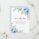 Modern blue watercolor flowers and greenery decorate this elegant floral save the date invitation. Use the online template tools to change the font style, colour and background to any of your choice.