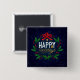 Elegant Blue Floral Happy Holidays | Pin Button
