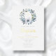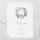 Elegant Blue Floral Religious Boy Baptism Foil Invitation.