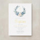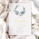 Elegant Blue Floral Religious Cross Boy Baptism Gold Foil Invitation.