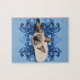 Elegant Blue Floral Siamese Cat Pretty Feline Jigsaw Puzzle