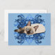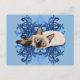 Elegant Blue Floral Siamese Cat Pretty Feline Postcard