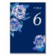 Elegant Blue Floral Silver Wedding Table Number