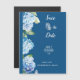 Announce your special day in style with this beautifully designed "Save the Date" wedding card. Featuring delicate blue hydrangea florals and an elegant script on a soft blue background, this invitation sets a romantic tone for your October wedding. The card highlights the wedding date (Sunday the 12th) and time (6 PM), making it both eye-catching and informative. Perfect for couples looking for a blend of beauty and simplicity in their wedding stationery.