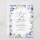 Elegant Blue Floral Wedding Photo Save The Date Invitation