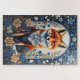 Elegant Blue Floral William Morris Inspired Fox Jigsaw Puzzle