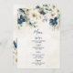 An elegant blue floral menu to compliment your winter wedding with sophisticated bouquets of watercolor flowers.