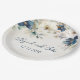 An elegant custom paper plate for your winter wedding wedding or bridal shower with a beautiful navy blue and teal watercolor floral theme.