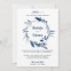 Invitation vos invités avec cette élégante invitation de mariage avec une belle couronne bleue contre un arrière - plan blanc. Ajoutez simplement les détails de votre événement sur ce modèle facile à utiliser pour en faire une invitation unique. Retournez la carte pour révéler un motif de points bleu et blanc au dos de la carte.