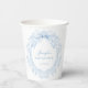 Elegant vintage Coquette themed baby boy shower paper cups featuring cute blue toile frame decorated with blue bow. Perfect for sweet French style baby boy celebrations.