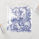Beautiful blue and white toile pattern featuring a man and a dog with a Roccocco or Late Baroque surround.
