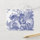 Beautiful blue and white toile pattern featuring a man and a dog with a Roccocco or Late Baroque surround.